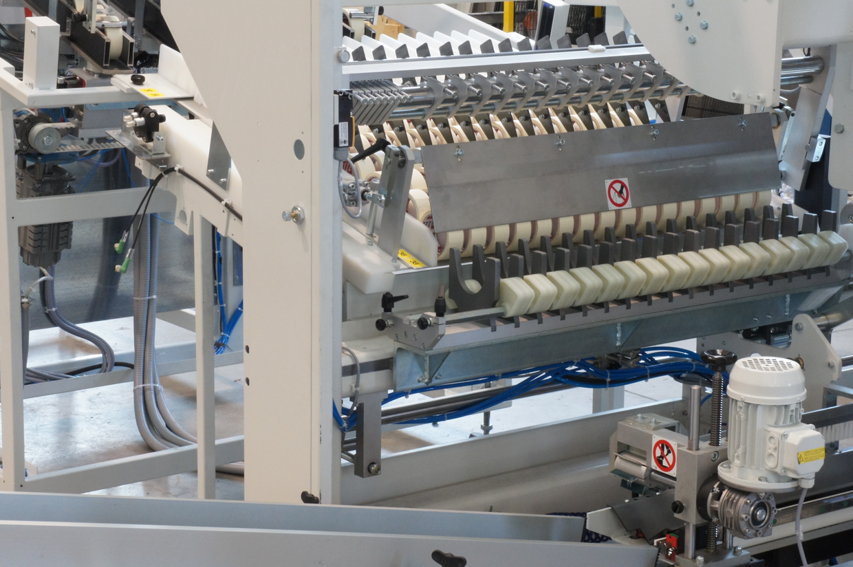 Questa macchina è in grado di imballare rotoli aventi un diametro massimo di 150 mm in composizione singola, a concertina o torre.